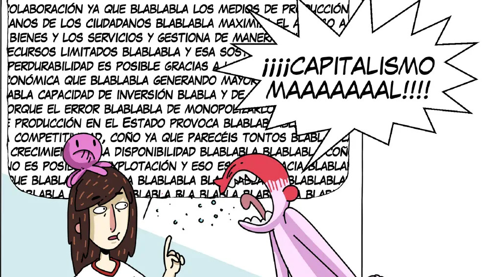 El capitalismo es hoy un hombre del saco omnisciente: horrible pesadilla que origina todos los males de la sociedad y favorece todas las injusticias. Según la encuesta Edelman Trust Barometrer, que se realiza en 28 países desde hace veinte años, el 60% de los españoles en 2020 se mostraba convencido de que el capitalismo hace más mal que bien al mundo. Las distópicas series que muestran apocalípticas profecías críticas con el sistema se multiplican, las camisetas se llenan de lemas anticapitalistas e, incluso, las entidades financieras se esfuerzan por convencernos de que los beneficios no importan, les importamos nosotros. Los títulos que critican el capitalismo se agolpan en las librerías: desde «Contra el capitalismo salvaje» hasta «Postcapitalismo», de «Capitalismo terminal» a «Otra economía es posible». «Decir no no basta», «La demonización de la clase obrera», «Refusal of work», «La vigencia del Manifiesto Comunista»… Nadie quiere estar en el lado malo, en la defensa de la bestia.